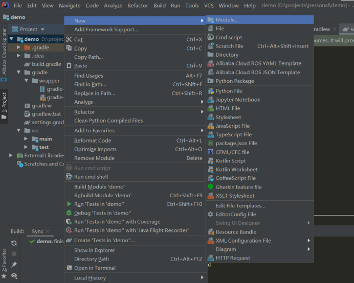 下一步:跟创建父工程一样,仍然选中Gradle创建模块.