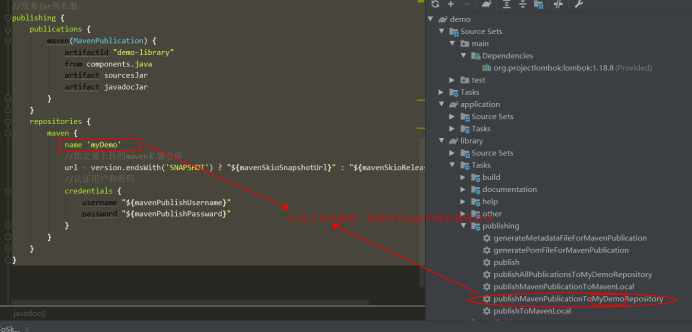 library打包上传私服请选择name对应的发布上传命令,如下图: