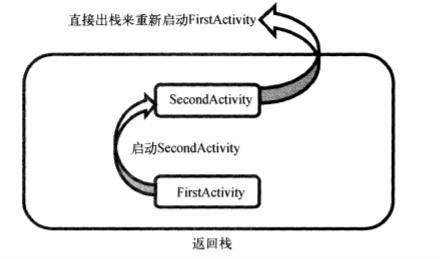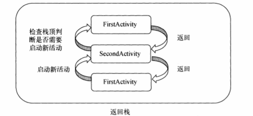 返回栈栈顶是firstactivity,现在要在启动firstactivity,并不会产生新的实例,要是启动secondactivity,会产生新的实例,secondactivity到了栈顶。接下来启动firstactivity,同样会产生新的实例。