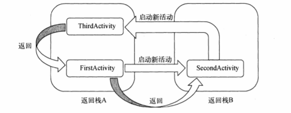 Android是通过任务来管理Activity的,一个任务就是一组存放在栈里的Activity的集合,这个栈也叫做返回栈(Back Stack)。每当启动一个新的Activity,就会在返回栈中入栈,并处于栈顶的位置。每当我们销毁一个Activity时,在栈顶的Activity就会出栈,这时前一个入栈的就会重新在栈顶出现。系统会显示处于栈顶的Activity给用户。