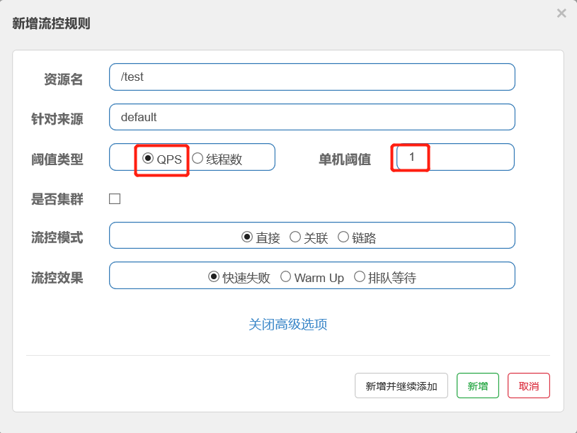 - 阈值类型选择:QPS
