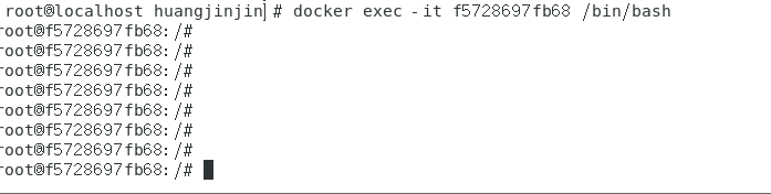 docker exec -it f5728697fb68 /bin/bash