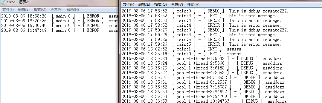 ### 输出DEBUG 级别以上的日志到=E://Java//LogTest2//logs/error.log ###
