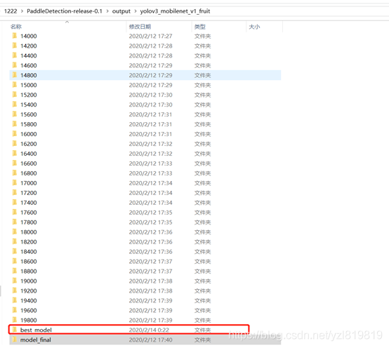 当我们训练完成后,在项目文件的output中可以看到我们生成的模型文件,在代码中我们设置模型每迭代200步保存一次,训练总共有20000步,因此会生成100个训练文件,由于我们使用 --eval参数进行边训练边测试,因此我们可以获得训练过程中最好的模型文件,我们将做好的模型进行导出