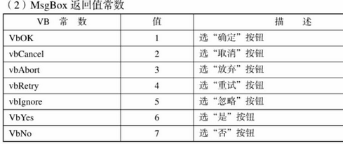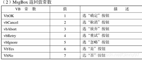 注意:msgbox返回值常数: