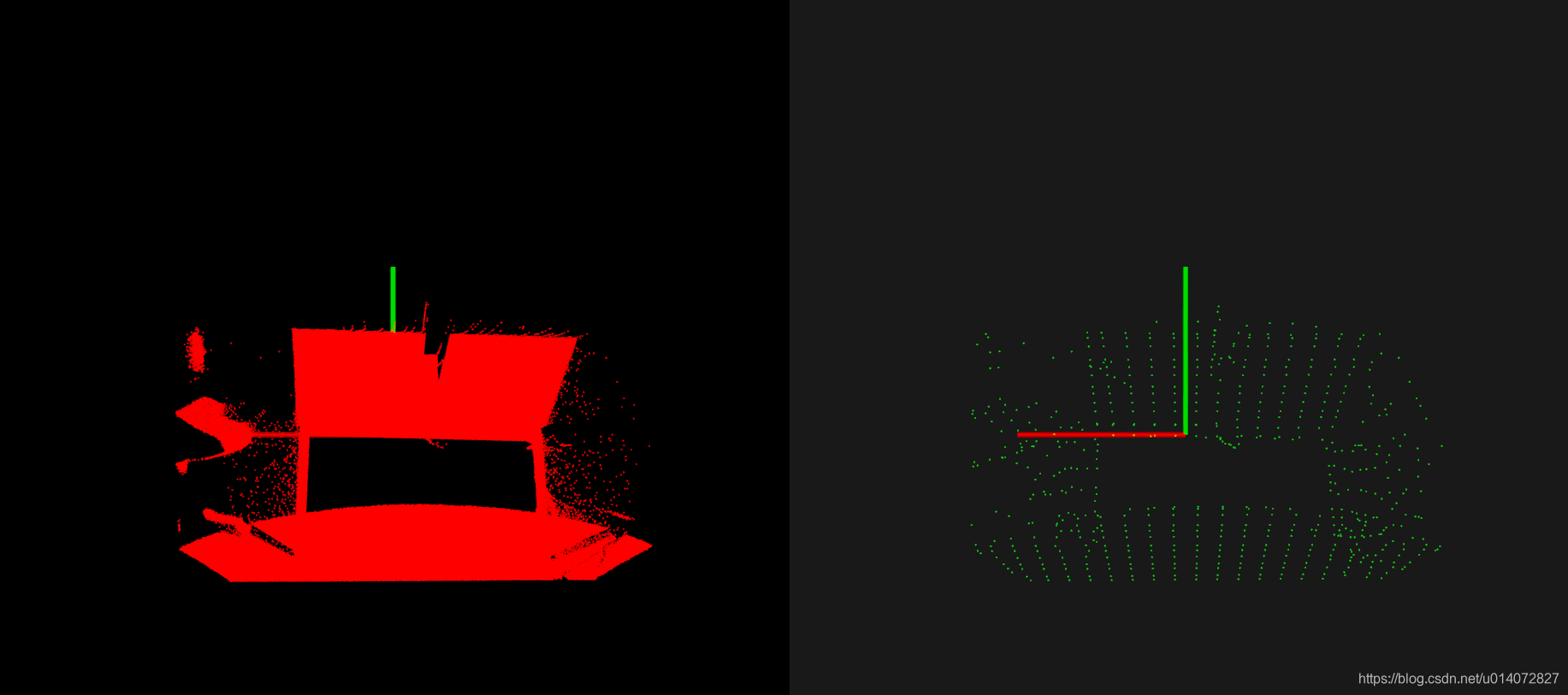 作用:使用体素化网格方法实现下采样,可在保持点云形状特征的情况下减少点云的数量;在提高配准、曲面重建、形状识别等算法的速度。