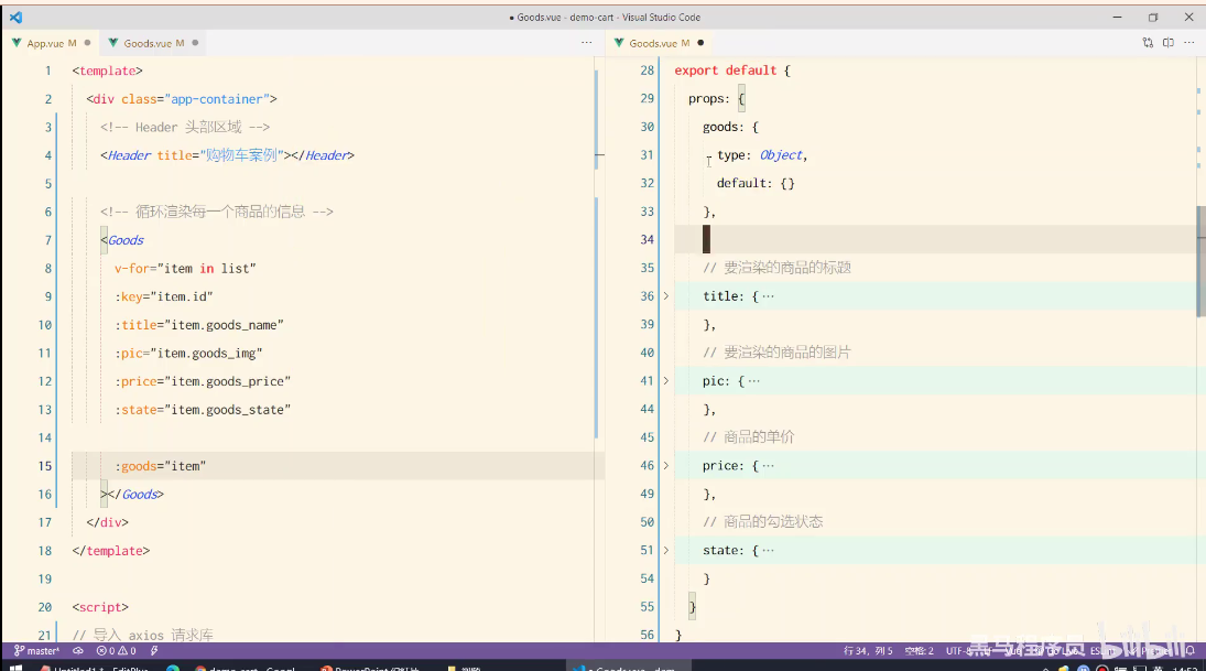 data() { return { list: [], }; }, methods: { // 封装请求列表数据的方法 async initCartList() { // 调用 axios 的 get 方法,请求列表数据 const { data: result } = await axios.get( "https://www.escook.cn/api/cart" ); // console.log(result); this.list = result.list; // 只要请求回来的数据,在页面渲染期间要用到,则必须转存到 data 中 },组件名字建议首个字母用大写