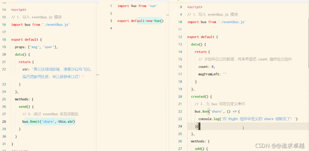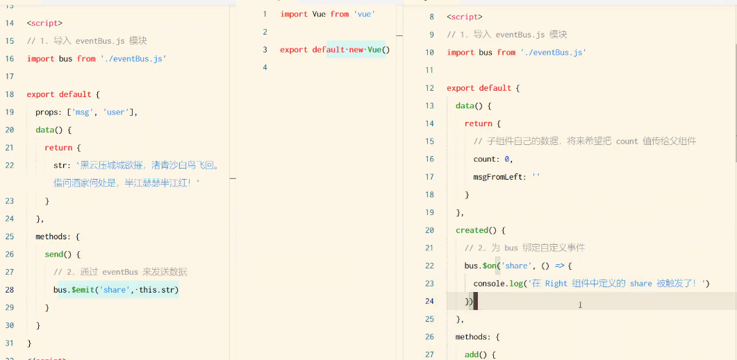 1.在组件文件夹里放一个eventBus.js,然后 export default new Vue()导出新建Vue实例对象