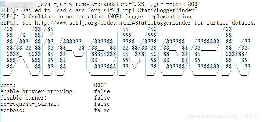 执行第三步之后,运行第四步命令执行jar包。在命令末尾添加 --port 9999可以自定义WireMock服务端口号。服务启动成功页面
