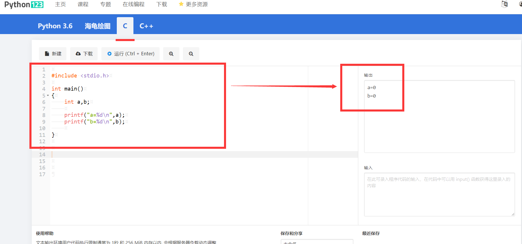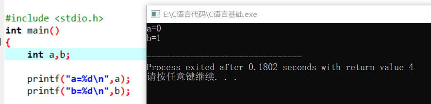 #include <stdio.h> int main() { int a,b; printf("a=%d\n",a); printf("b=%d\n",b); }
