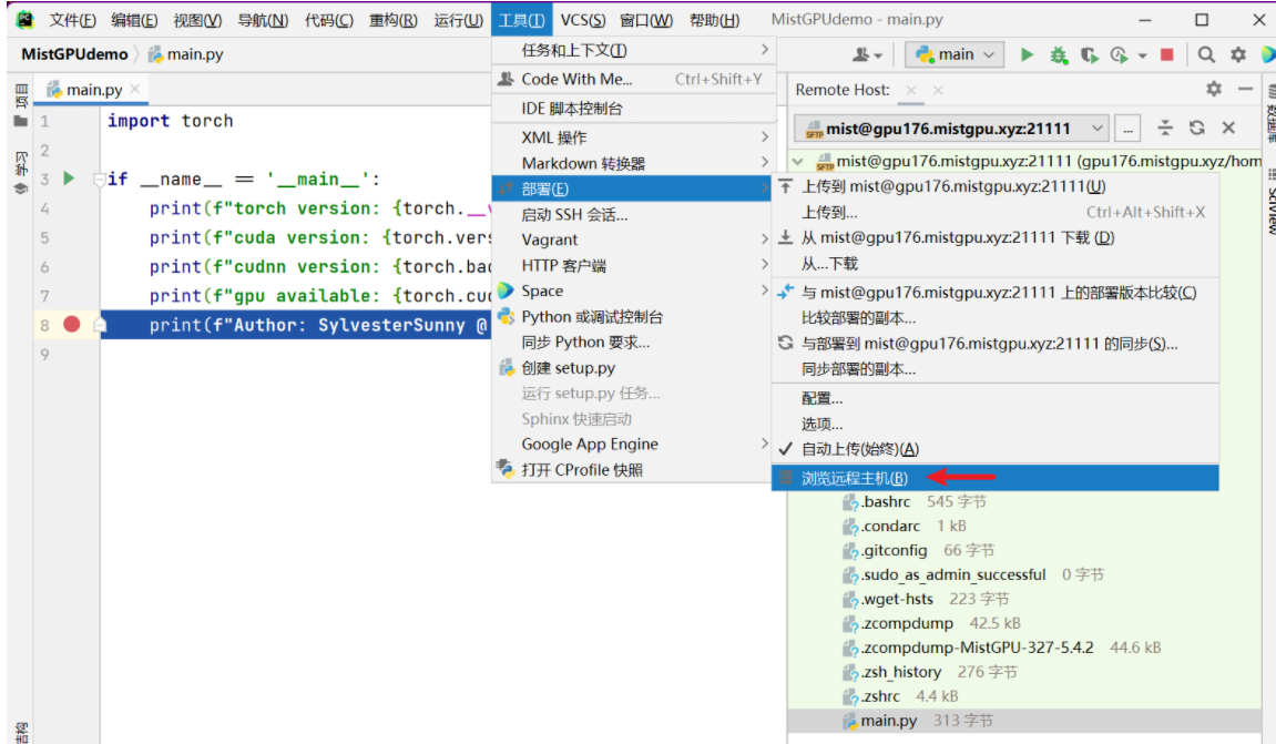 可以看到远程主机下对应的目录,也可以在终端处查看目录。
