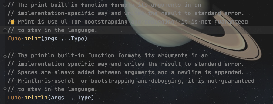 也就是说"Print"或"Println"是已经封装好的printf,他们会帮你自动格式化