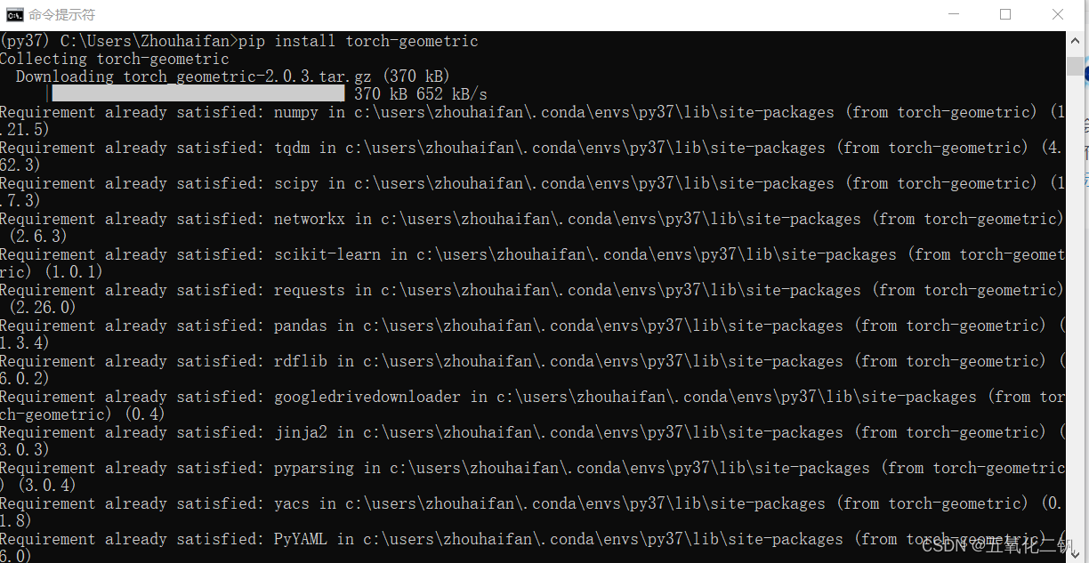 学习GNN的时候尝试在线安装torch_geometric ,自己安装过程中出现了挺多问题,找到官网后按照其指示最后成功在线安装(官网链接:torch-geometric · PyPI )