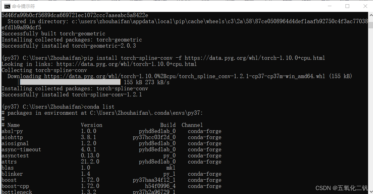 按照官网上的说明,以下为选择性安装部分(torch-cluster和torch-spline-conv):