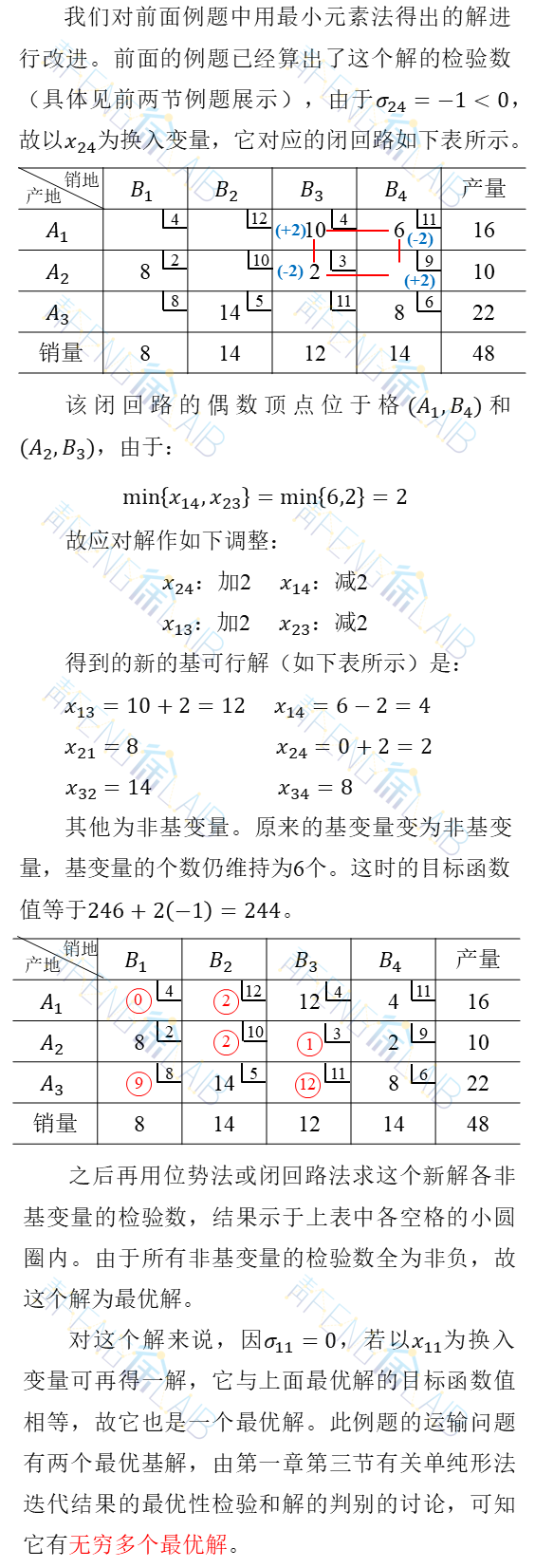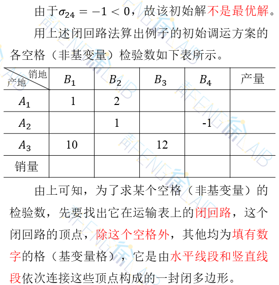 综上所述,闭回路法的方法思路更加直观便于理解,而对偶变量法(位势法)会比闭回路法计算便捷很多。
