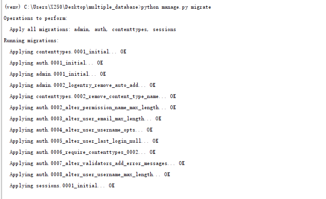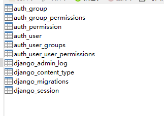 python manage.py migrate 然后数据库就会创建我们需要使用到的一些django自带表结构: