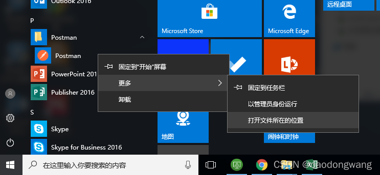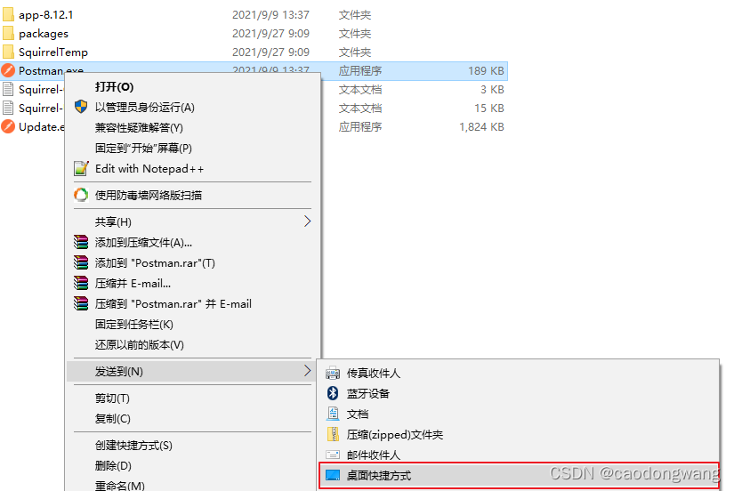 然后右击软件,发送至->桌面快捷方式,后续即可在桌面上打开postman软件。