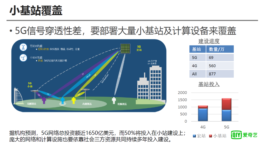 根据招商证券的预测,在5G网络基础设施总投资相比4G会增加50%,而其中有将近一半都需要投到小基站上,以提升室内网络覆盖。依赖的资源、楼宇物业的分散,使得小基站需要运营商联合社会三方资源持续多年联合共建才能跟得上。