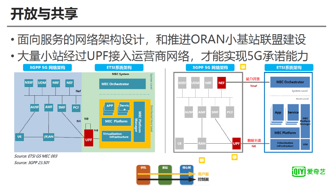 前面来自运营商的嘉宾已反复提到UPF接入点,在3GPP和ETSI公布过的边缘计算架构中,无论是ETSI将UPF定义在MEC侧,还是3GPP将其定义在核心网侧,都提供了一个开放接口定义。