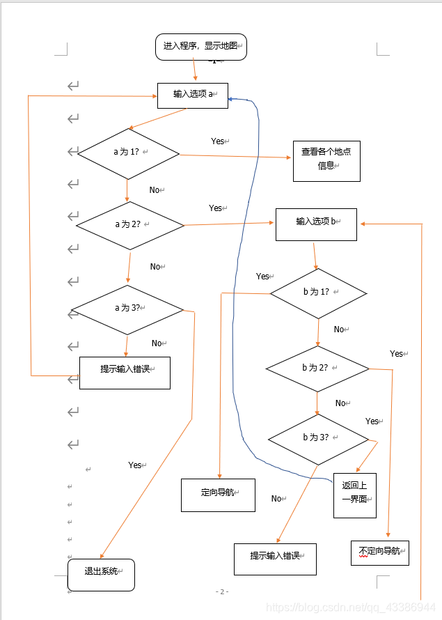 根据设计要求确定导航系统中建立学校平面图的图形数据结构,查询给定建筑信息,找出任意起始点与终点的最佳路径等基本功能实现的方案,画出流程图,并对各部分功能进行说明。