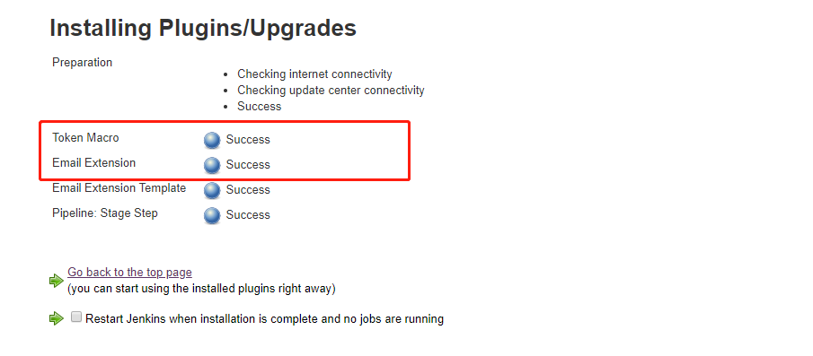 出现这个安装插错误,可以按照提示先安装缺失的插件,再安装此插件,如上图中需要安装“Email Extension Plugin version 2.66”,提示信息中提示需要先安装“token-macro version 2.3”,那我们可以在插件管理中先安装这个“token-macro version 2.3”,安装成功后在安装“Email Extension Plugin version 2.66”即可。注意:此过程需要联网!