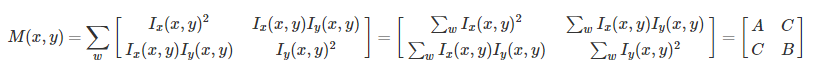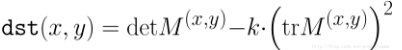 cornerHarris 函数用于在OpenCV中运行Harris角点检测算子处理图像。和cornerMinEigenVal( )以及cornerEigenValsAndVecs( )函数类似,cornerHarris 函数对于每一个像素(x,y)在blockSize*blockSize邻域内,计算2x2梯度的协方差矩阵M(x,y),接着它计算如下式子: