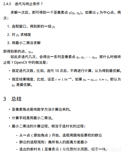 2.1 如何从整数算出小数? 图像本来都是像素点,用整数来表达坐标最自然。为什么会有小数坐标 呢?这其实是引入数学手段,进行计算的结果。那是什么数学方法呢?最小 二乘法。