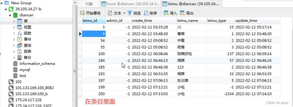 复制好的 SQL 语句中,要保证主键还有关联键是唯⼀的,在这⾥ leimu_type 和 food_id 需是唯⼀