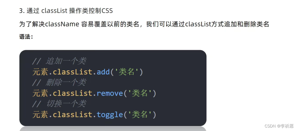 toggle指的是判断当前元素有没有该类,有的话就删除,没有的话就删掉。