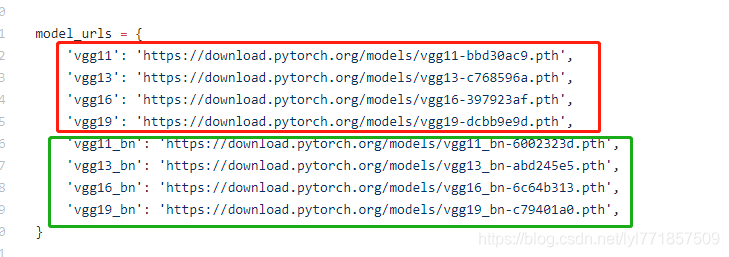 其实通过上面的表格就已经大致知道模型的框架组成部分了。其实VGG16与VGG19的区别就是前者在三、四、五部分少了一层卷积。这里先附基于pytorch的一些预训练模型预训练模型下载地址。
