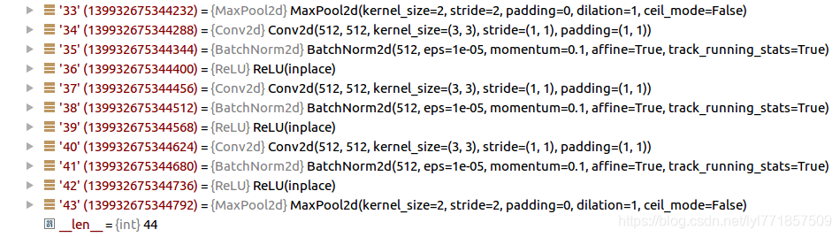 下图是通过导入VGG16_bn模型在调试过程中的结果,可见与上面是一致。