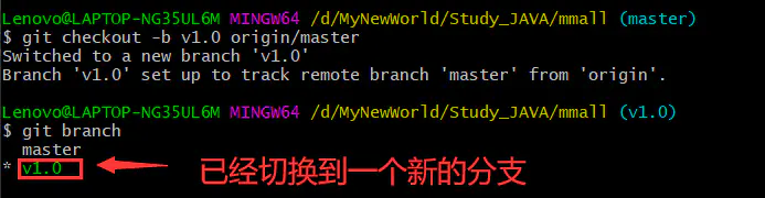 git checkout -b v1.0 origin/master