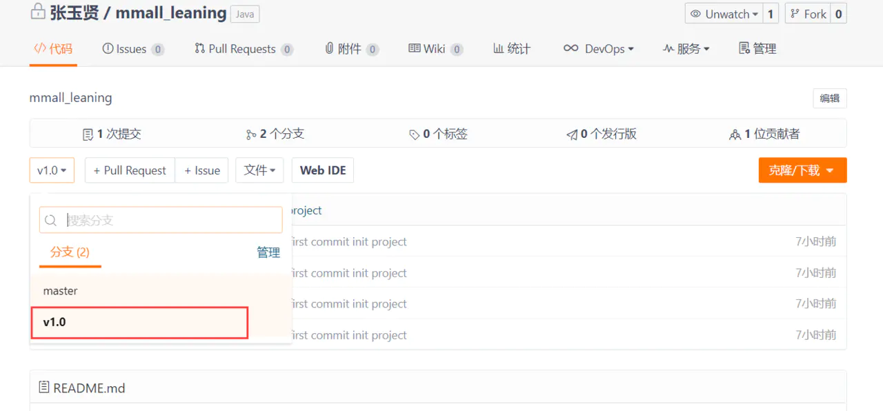 到这,Git的初始化以及创建新的分支都已经完成了,这个是我根据自身项目创建的,仅供参考!