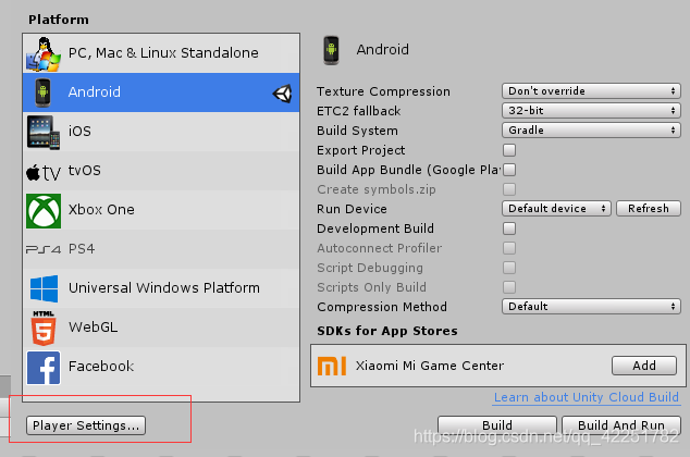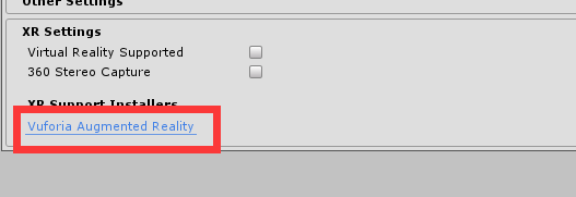 若想下载自己版本的Vuforia其实很简单,首先打开这个页面,点击PlayerSettings,随后找到XRsetting