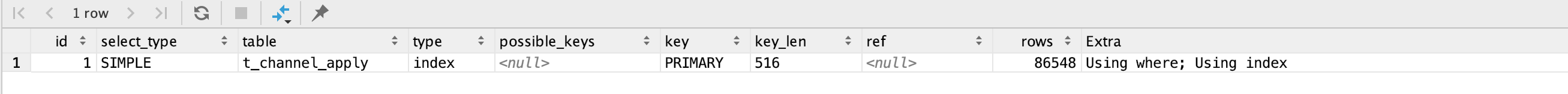 但我 explain select count(content_app_id) from t_channel_apply where content_app_id = ‘xxx’,发现这个语句竟然用到了索引,这个真是颠覆了我的认知