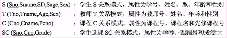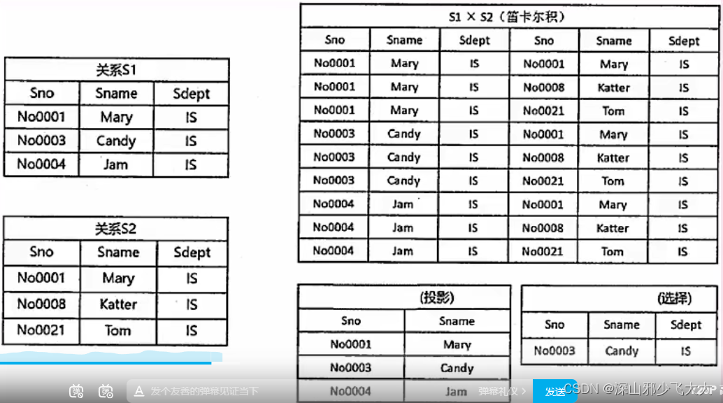 - 投影:实际是按条件选择某关系模式中的某列,列也可以用数字表示(Π)。