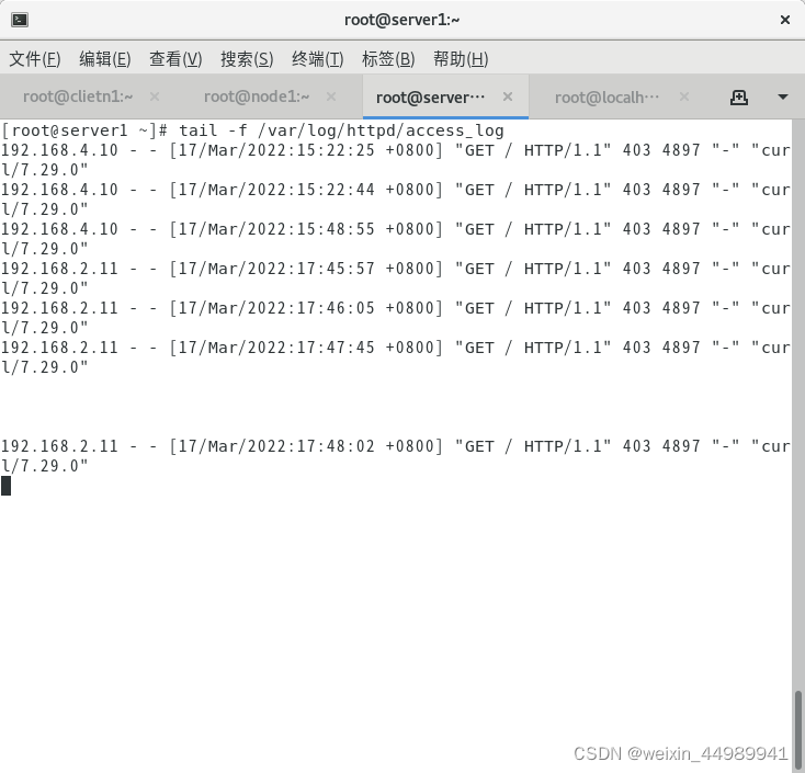 [root@server1 ~]# tail -f /var/log/httpd/access_log