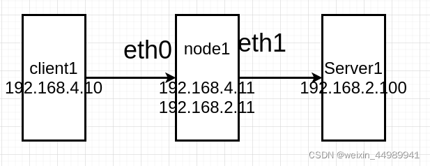 在我们的练习环境下,在node1上配置NAT,当client1访问server1时,将client1的地址转换成server1的192.168.2.x再发给server1。因为数据包的源地址改变了,所以叫SNAT,S即Source。
