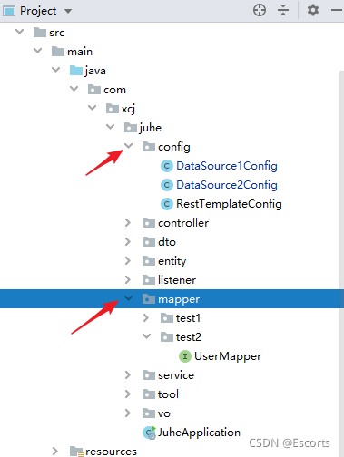 1、在config目录下创建两个数据源配置类:(代码中具体配置参考自己的项目类路径)