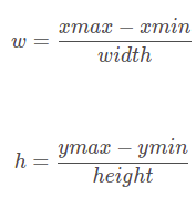 # w = (xmax-xmin) / width h = (ymax-ymin) / height