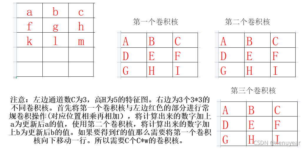 3.通道channels: (1)RGB,channels=3。(2)每个卷积层中卷积核的数量。