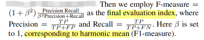 所以 F-measure=2/(1/Precision+1/Recall),if β=1.