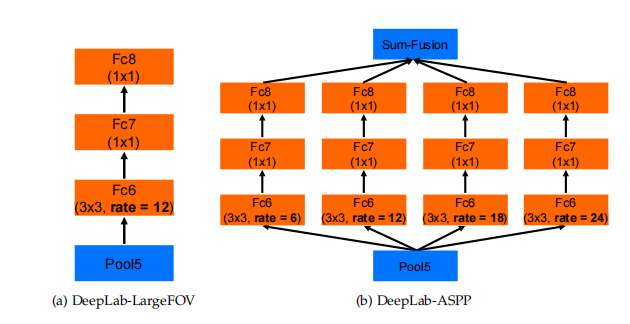 来自论文:DeepLab: Semantic Image Segmentation with Deep Convolutional Nets, Atrous Convolution, and Fully Connected CRFs