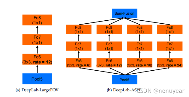 7.ASPP:(rate:卷积率)卷积率不断变大为此增加了感受野。