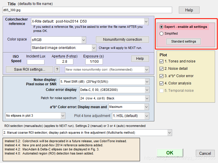 2、Colorchecker reference: 就是制作色卡的参考标准(L*a*b*值的差异),具体根据当前使用色卡参考的标准来选择即可(购买的色卡包装上应该都有注明),目前我司用的色卡参考的是:X-Rite default:post-Nov 2014 D50