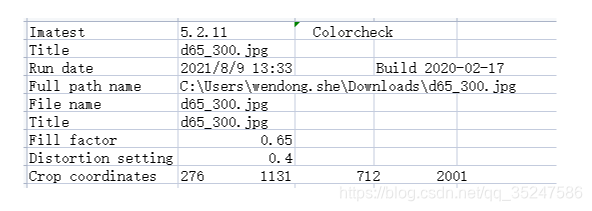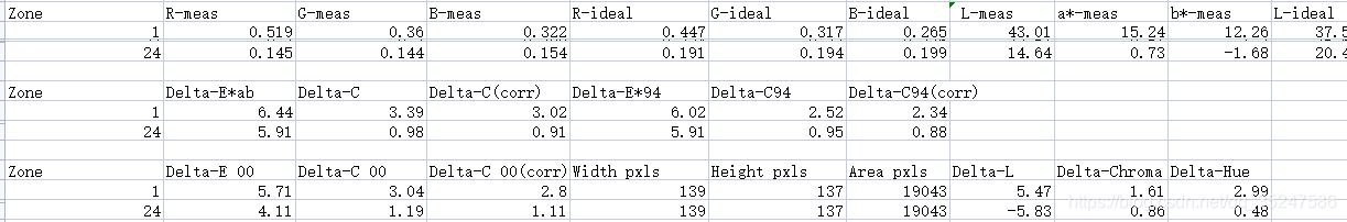 5、保存的.CVS文件内容分析; .CVS输出文件包含Colorcheck的测试结果,格式如下: