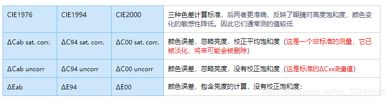 CIE1994:相较于CIE1976, 对于高饱和度的颜色计算要准确的多;