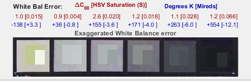 f、白平衡误差往往在 灰色块中最为明显(底行 2-5)。 对于 S < 0.02,它几乎不可见。 S > 0.10 是相当严重的,特别是对于较浅的灰色块。