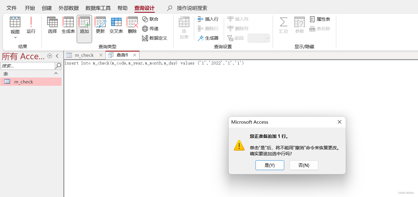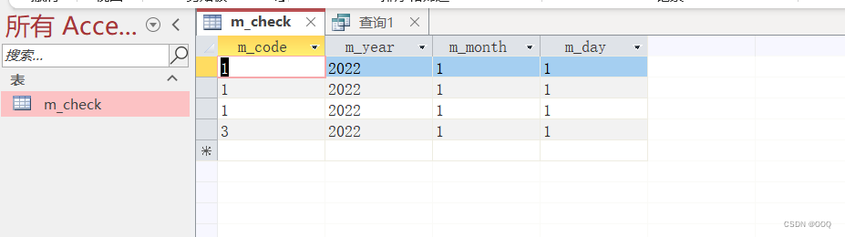 SQL insert into check(code,year,month,day) values ('1','2022','1','1')2.考虑是不是因为使用了 code 、year 、month 、day 等字段所引起的,所以将这几个字段更改成了 m_code、m_year、m_month、m_day。问题还是存在。