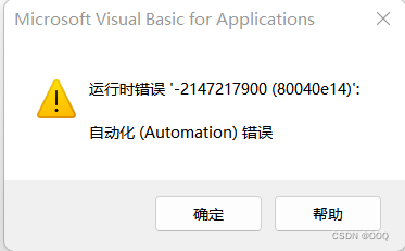 问题描述:初次尝试使用VBA去操作Access数据库,执行 INSERT 操作的时候,发生了“运行时错误'-2147217900(80040e14):自动化(Automation)错误”异常。